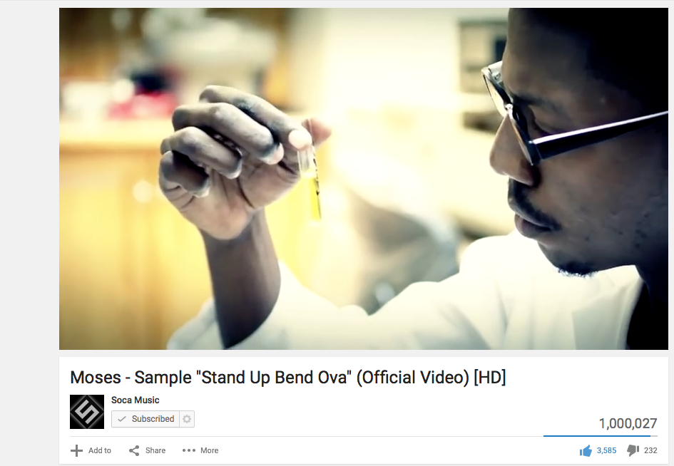 ‘Sample’ meanwhile, will likely continue to enjoy international growth- this as many of London’s DJs have made it part of their sessions in nightclubs in that part of the world. The 1million Youtube mark is definitely a milestone victory for the young, Chaguanas native whose aim is to take his music to audiences around the world. Way to go Moses!