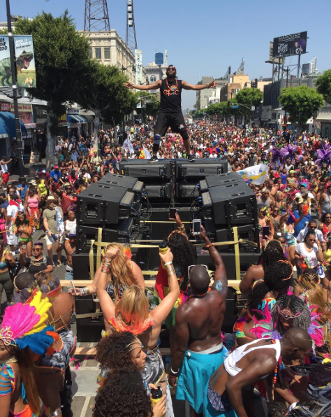 Saturday saw thousands of revelers in the Parade of Bands, which featured 47 bands representing 30 Caribbean and Latin American countries. The parade route ran 3 miles down the famed Hollywood Blvd, ending at the Carnival village where performances continued into the evening. Performers included Jovi Rockwell, Supa G & LovaBoy from Belize. Of course MM’s Epic Mas is still the largest band but SWS, Extacy and Hollwood Massive all came nice with strong showings.
