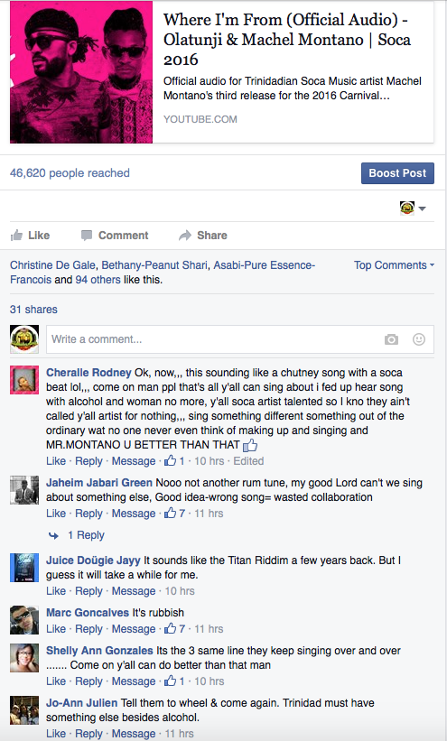 Social media has been abuzz with reviews by fans of both Trinidad and Tobago’s reigning Groovy and Power Soca Monarch champs, this on the heels of their much anticipated collaborative release ahead of Carnival 2016. Unfortunately though, the reviews aren’t as good as expected. For a couple weeks, talk of the collaboration could be heard. Millbeatz Entertainment production head, David Millien had indicated his appreciation for the opportunity to work with both Montano and Yearwood together, ahead of the season, but alas, the negative reviews on a track that boasts of Trinbagonians’ love of rum, have overrun his noble ambitions.